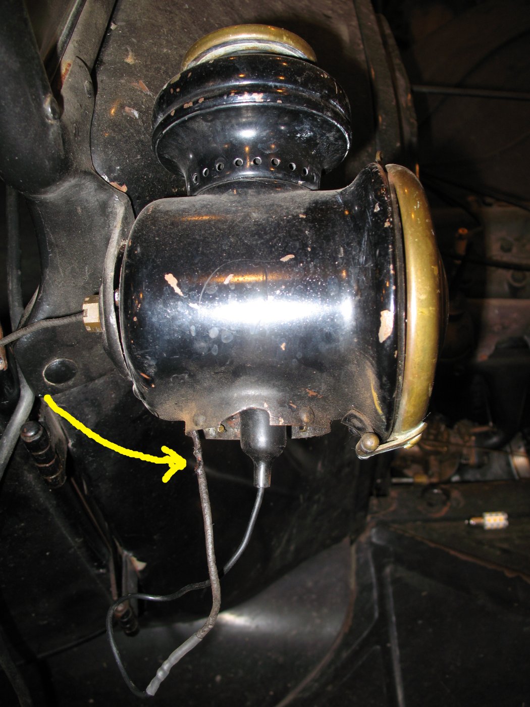 Part of the reason for the cut insulation was that the wire going into the lamp was very tight in the hole, and pulling it in had made the cut. Originally I had drilled a ⁷⁄₆₄" hole, so I enlarged it to ⁵⁄₃₂". That allowed a new wire to slide in easily. Since learning about the mini-torch here on the forum, I've found it better than a soldering gun on a lot of jobs
