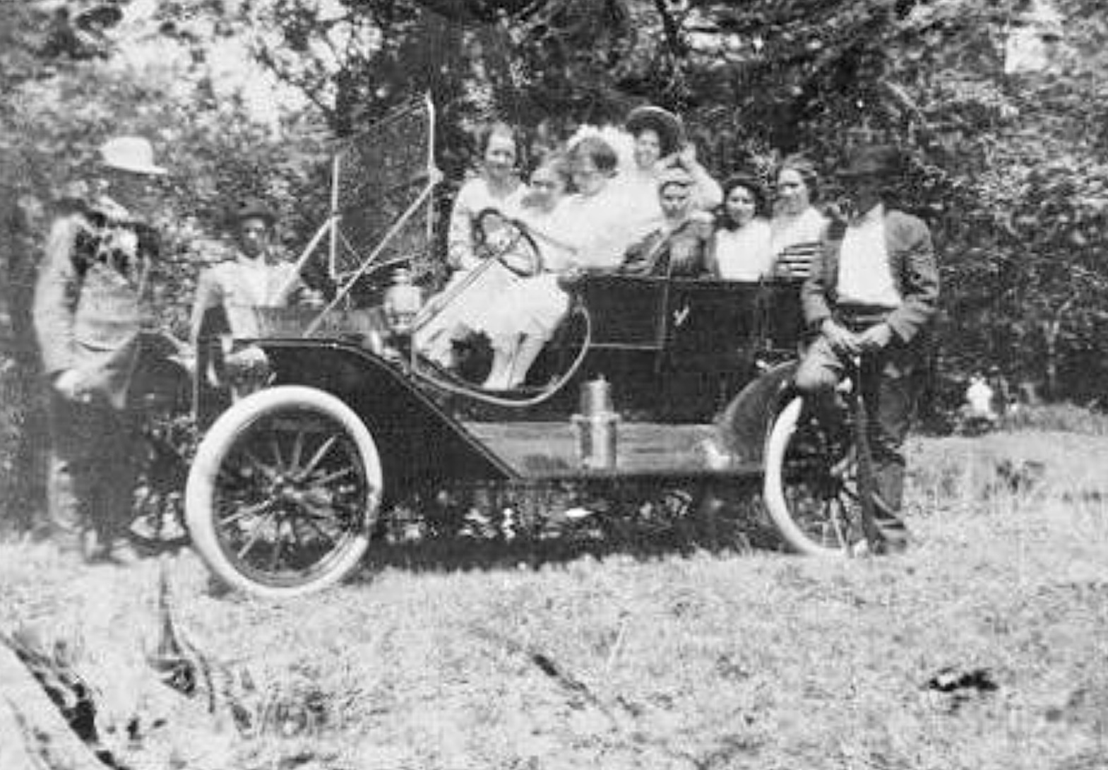 Picture three, appears to be a nice 1915 runabout. Brass trim bezel and cap. I wish I could get a better look at the whole car!