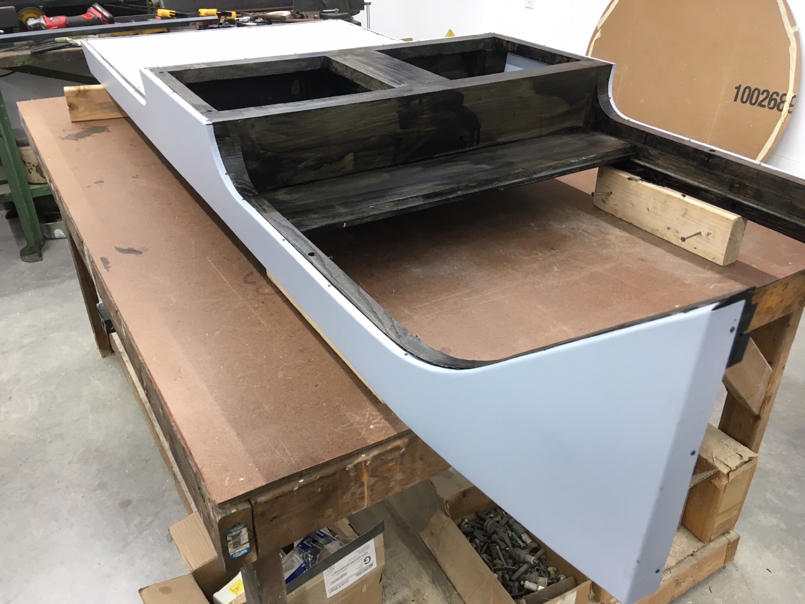 Took the sheetmetal off and sealing the woodwork with black lacquer. Now waiting for plates from the steel guys.