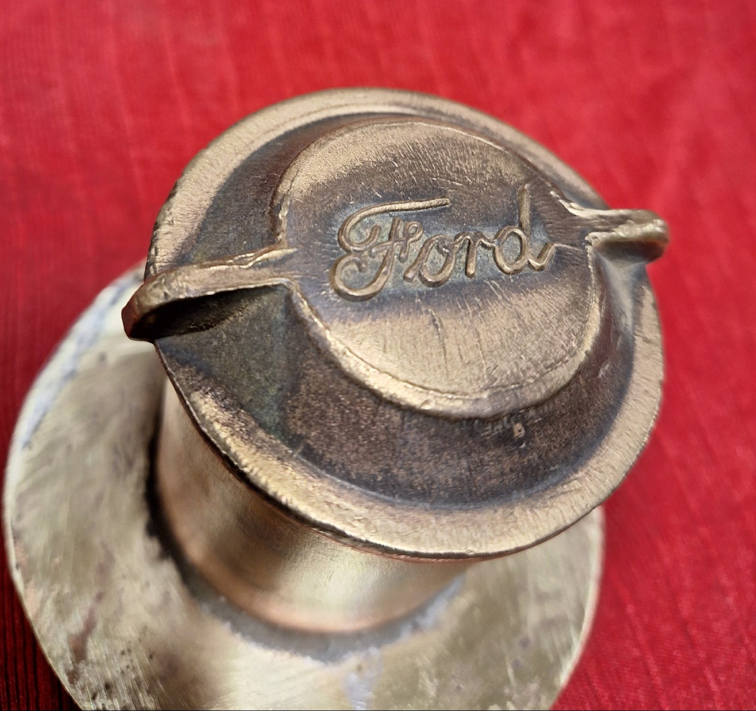 Ken, this one came from a radiator top tank, from a small English car like a Prefect or Anglia. The Ford script varies quite a bit. This one is one of the better ones.