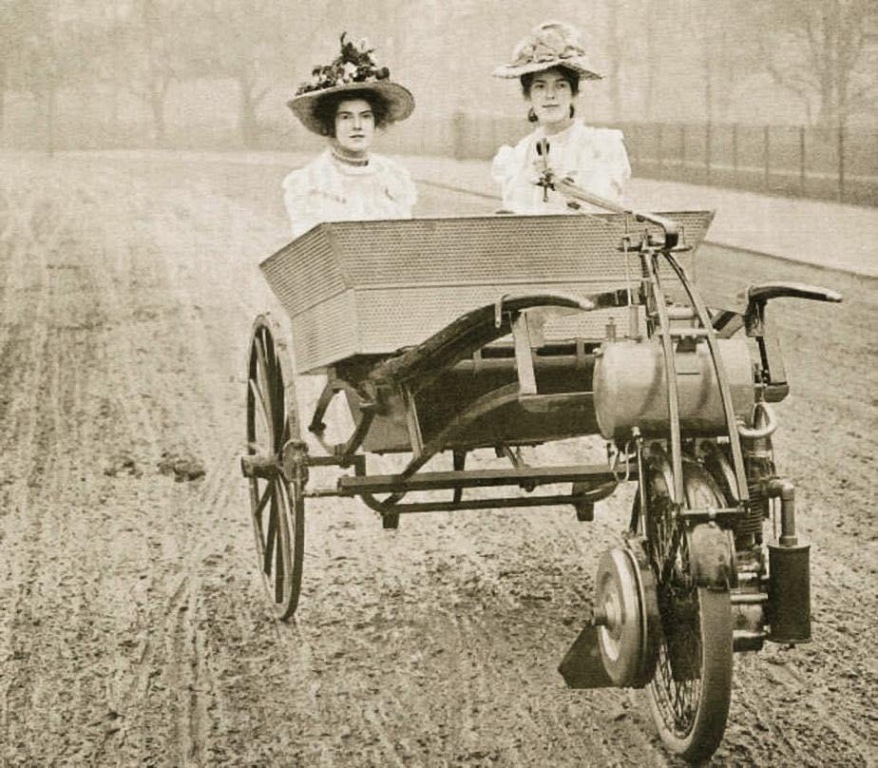 By pedaling furiously, an athletic driver could attain speeds of 15 miles per hour. Unfortunately, the poor road conditions of the day caused the machine jounce violently at speed, in consequence of which it would leave a trail of assorted tools behind it whenever it was moving at any speed greater than a walk. That caused the Bridge And Road Committee to ban it from the public ways. The machine was converted into a rolling power milking machine, and remained in that service until sometime after The War.