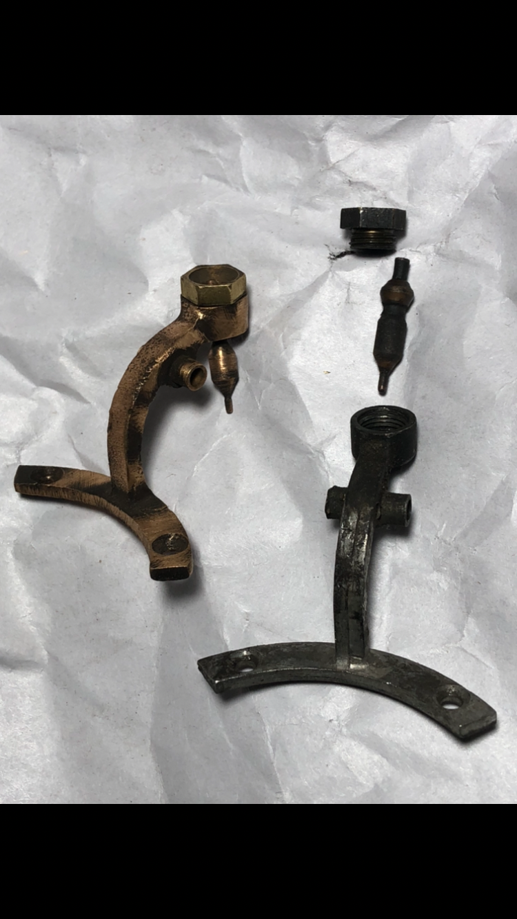 The S and H1 bowls. The soldered in threaded insert for the petcock is missing from the H1 bowl. The wire venturi retaining clips in H1’s have 2- 90 degree bends at the end unlike the G which has one.