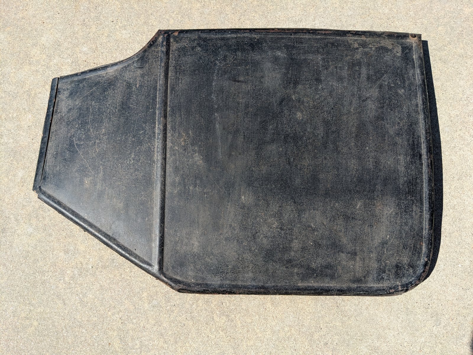Thanks for sharing. That fore-door appears to be Beaudette. The nailed-on trim tells me it was made sometime before body B-22927. Later Beaudette bodies had a rolled-in bead. The hole in the top left is likely where a carriage bolt was used to attach a bracket. The hole on the right is where one side of the bulb horn bracket was attached. The other side of the bracket would have been on the side of the seat.