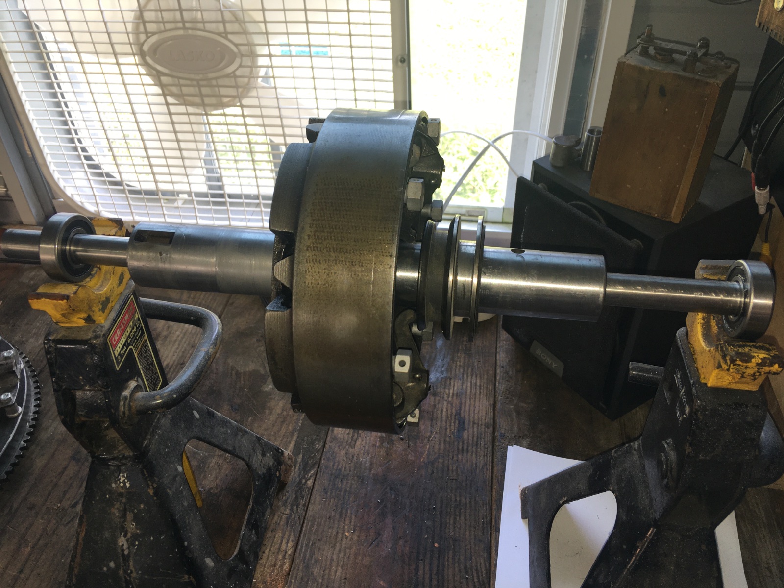 Father's Day here, and my son worked on the replacement generator for Henrietta. He has asked for input with his work in another post. This is a rebuild of a good patina matching unit for the old girl. New sealed bearings, undercut and machined commutator on a tested arnmature, new insulation on fieds leads and a new terminal wire soldered to the terrminal bolt, and all new brushes. Fortunately the insulation on the brush holder plate was undamaged and adjustment of the third brush will be easy.