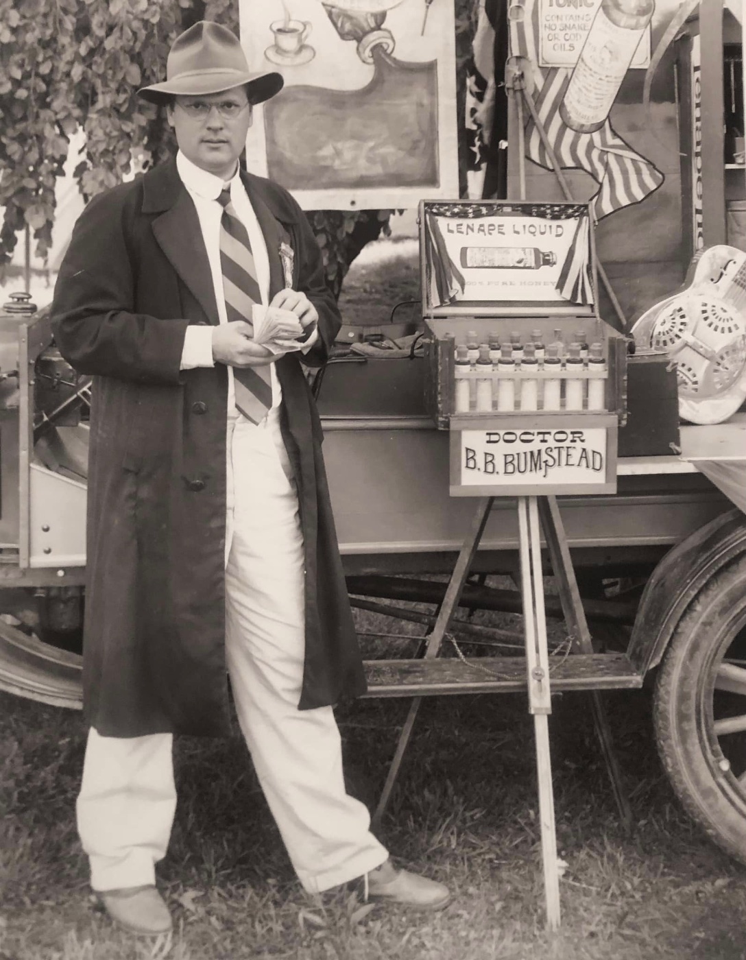 Me with the model T we used for our traveling medicine show. I had built a stage that folded out the back where we stood to sell Lenape Liquid … our elixir.