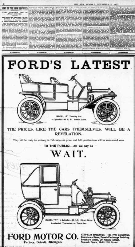 Was “Model T” mentioned in that first add? When trying to enlarge it a bit it’s too fuzzy to read carefully. Maybe others can see it better. If its the first promo add maybe the Model designation wasn’t added yet.