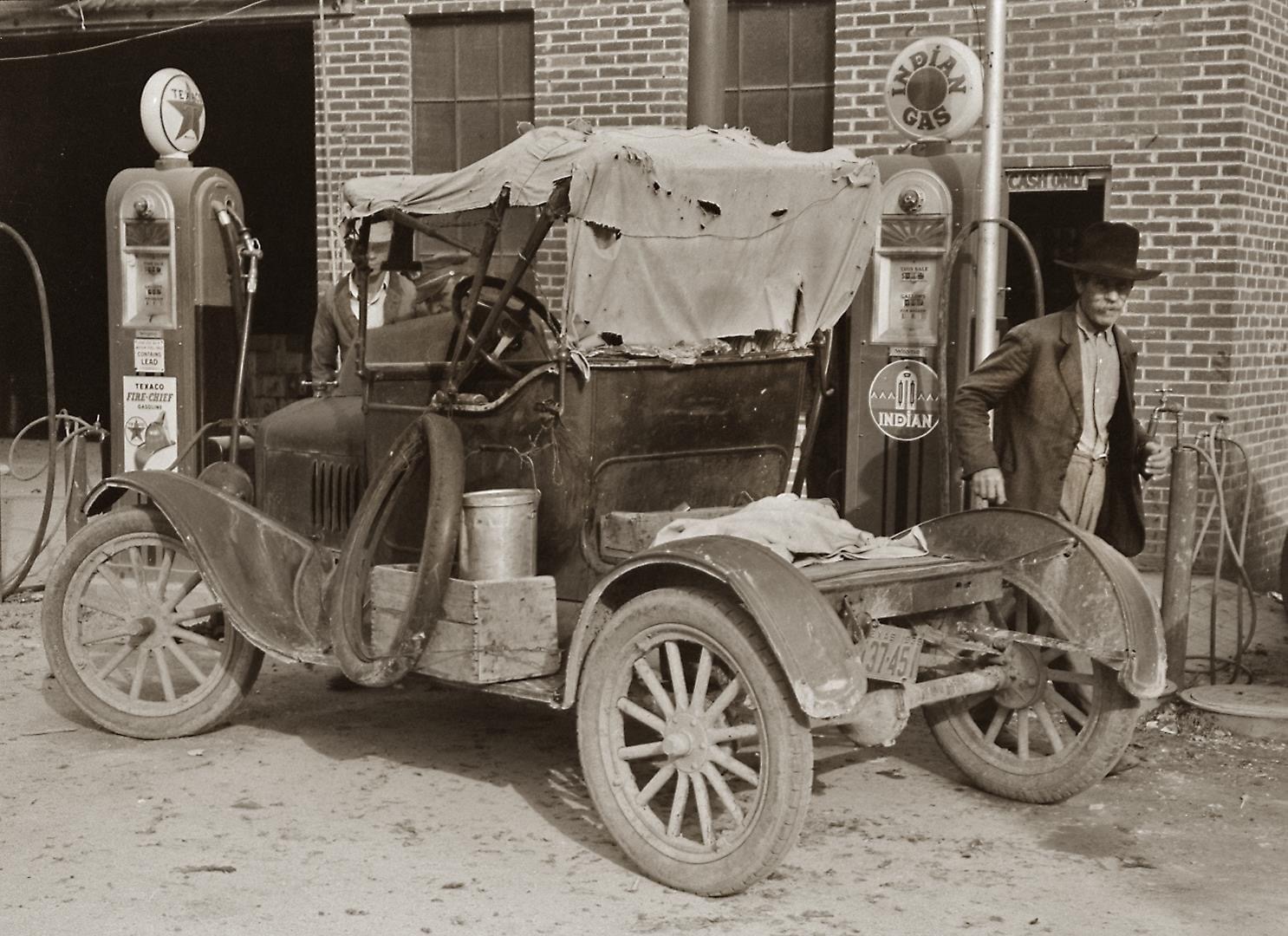 We were never poor. My fathwr eartned about $150 a month as an educator, first as a superintendent of school in Montgomery, MN and then as a principal in Minneapolis. With that about of money he bought new cars and a home. We did observe poverty. "Bums would walk up from a "Hoover Town" and ask for handouts, often doing a bit of work. In the late 30s, we would see a few Model Ts and more Model As./ Big old cars were used by plumbers and painters as work "trucks". Before WWII, the scrap yards were full of early autos. Scrap drives during WWII cleaned out a lot of them. The Buick dealer in downtown Minneapolis bought 30 or so eartly Buicks and stored them. He sold many of them in the late 40s. Farm yards, often back by the stone pile were the remains of early cars, lots of Model Ts.