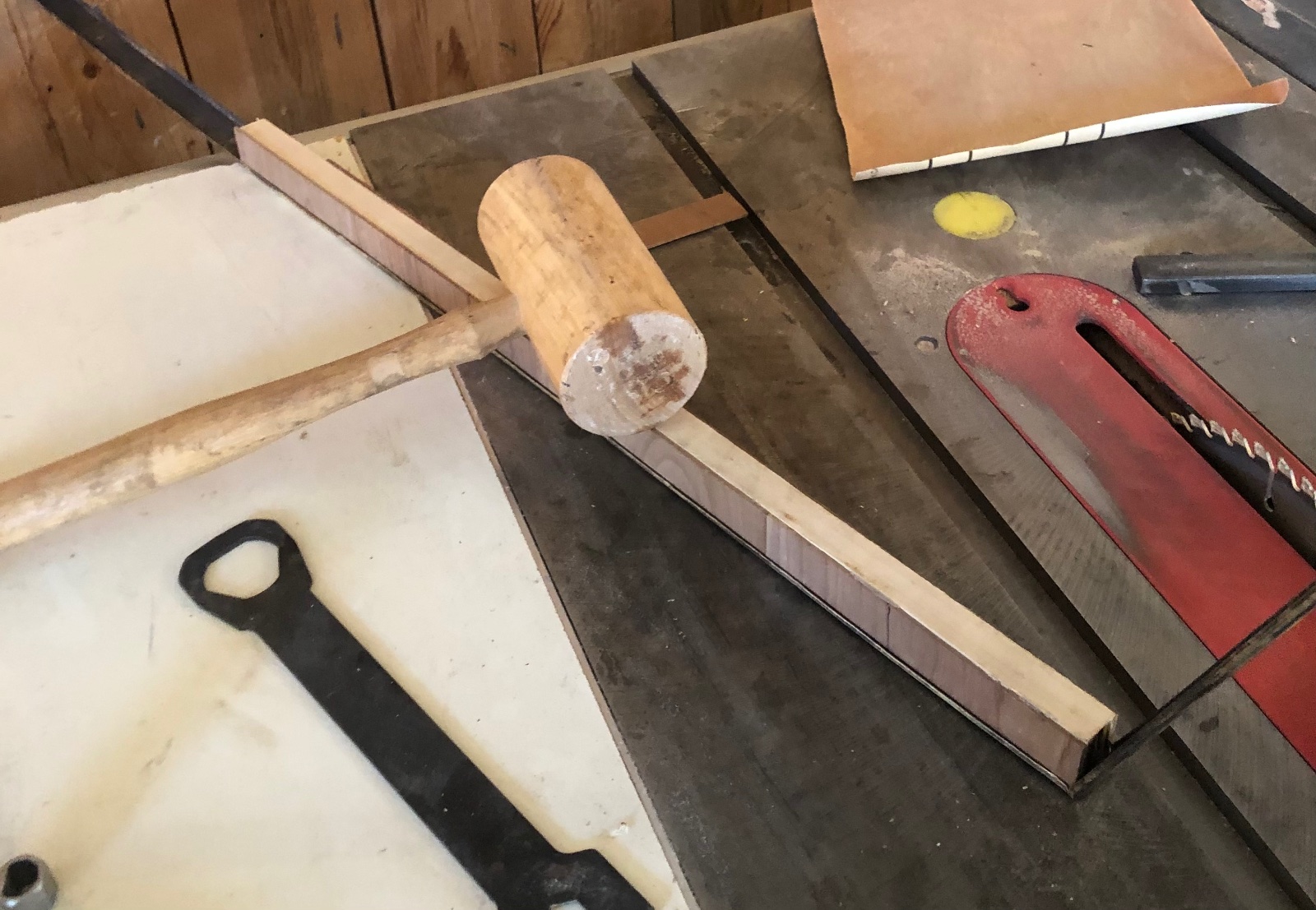 A strip cut from the panel blank and a mallet made sure of the fit, and straightened up the trim strip.