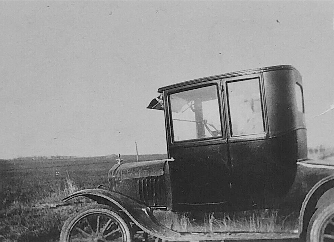 Two 1915/'16 Ts, a roadster with a peddler's box and a touring car, both appear to have a blacked out brass radiator. Just an unusual observation. The touring car clearly has an electric horn button, so likely a late 1915 or 1916 car.