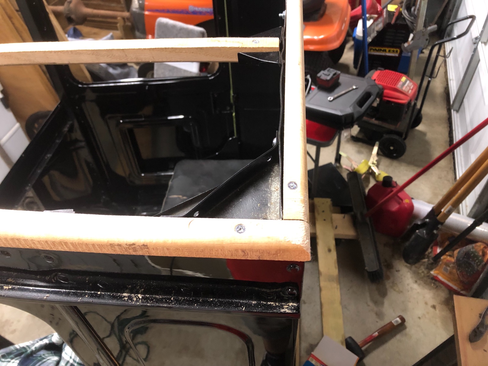 The edges of this layer were more poofy than the last after trimming but with little more trimming and the top layer it will be fine. Here’s the view from the inside too. It’s just from it laying on top. It turned out much straighter won’t I was able to put some tension on it and a few staples. That’s all for now. The hidem welt is on order and we still need to fit the top layer. Maybe it’ll be done before the weekend. Maybe not.