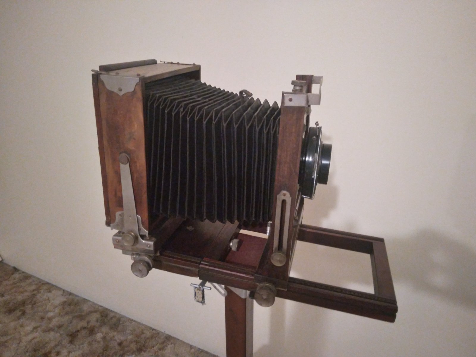Sure, I can help you with this camera. We use view cameras all the time in our business. It’s actually a newer camera than what we generally use. Can even teach you how to make the gelatin emulsion on glass plates that were used in that camera. See our website www.collodion.org