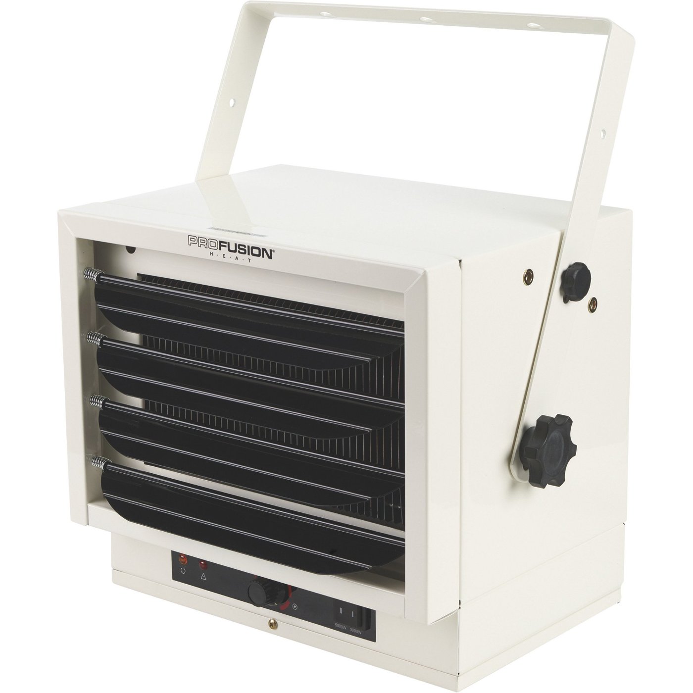 I use a ceiling mounted, 240V, 17,500 BTU electric heater from Northern Tool in my 3 car insulated garage. Works great!