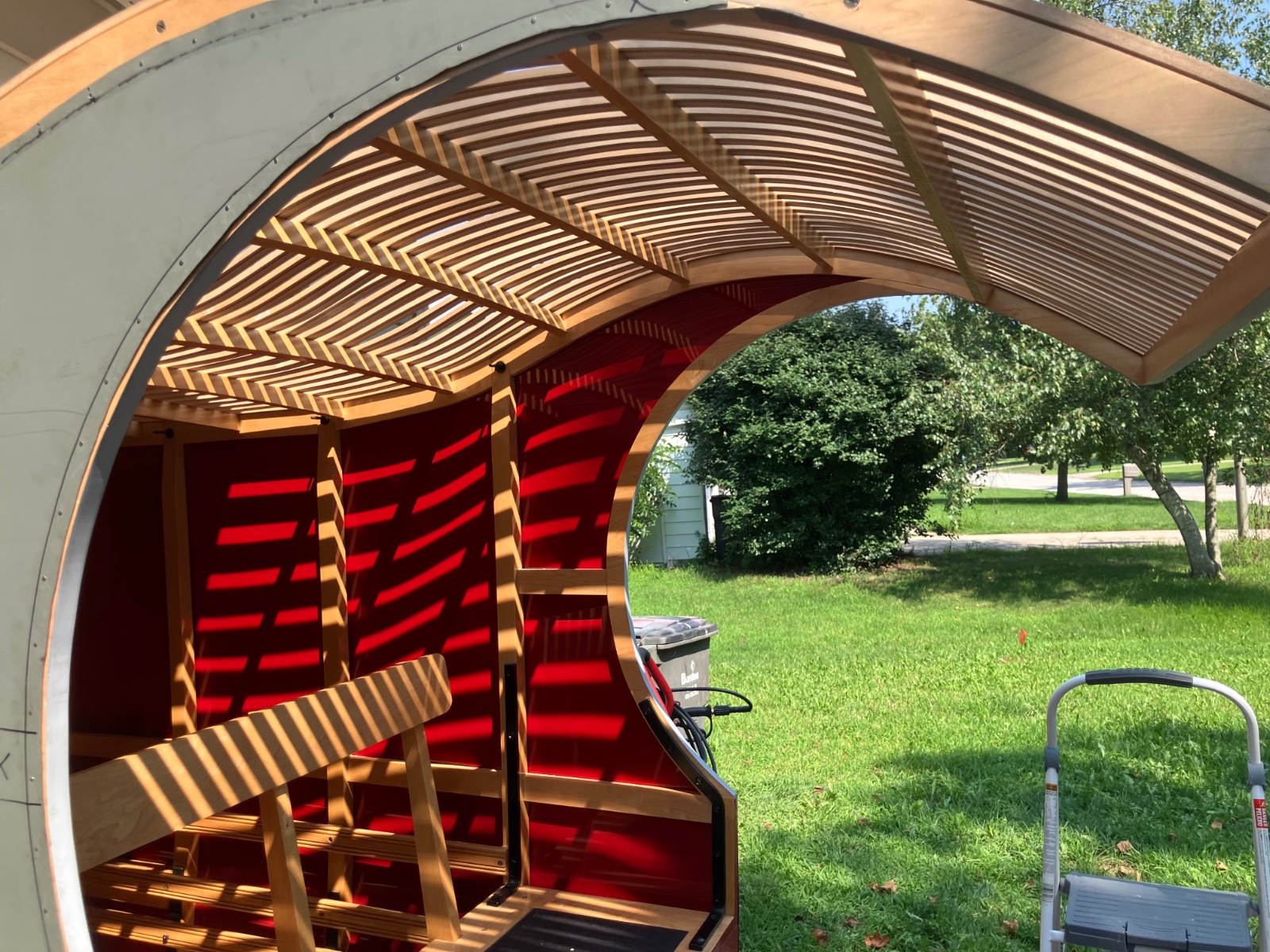 Started steam bending some of the slats to get the roof squared up. Everything worked as it should! I’ll have a video of the process soon.