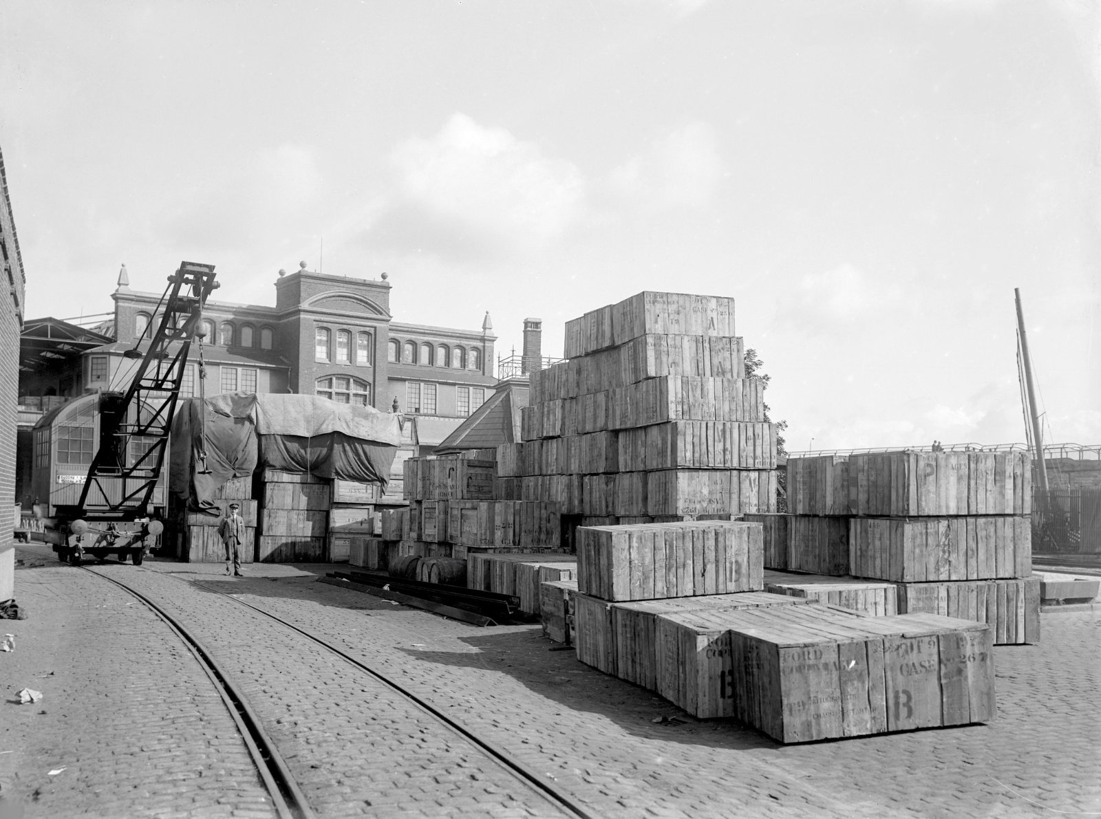 It is from 1923 and a pier in the Copenhagen Free Habour. A handy probebly steamdriven crane can be moved around on the rails in the pier.