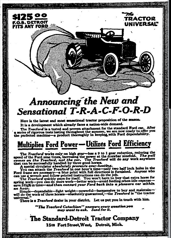 In case it's of interest there is a little more on both the Model T and the Tracford, in the Chico Record of 15th April 1917:
