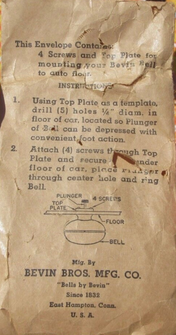 Here is a very nice original early T-era heavy nickel-plated brass Bevin Bermuda Foot Bell. This bell is in wonderful original condition, with nice nickel plating with very minor shelf wear. Looks to be NOS or barely used. It mounts under the floorboards and produces a very loud “DING DONG!” when the foot plunger is depressed. 5-1/2 diameter. Lots of fun, I have one on each of my Ts. 300 includes shipping.