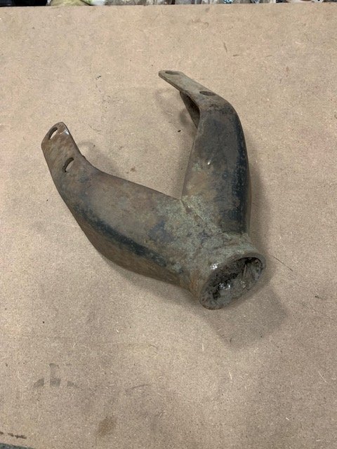 WTB Model T Ford 1926 -27 Wire Wheel Gooseneck Carrier. Must have good end to attach under rear spring. Damaged tire mounting plate or bolt threads are not important. Carrier to be modified as a trailer hitch. Respond via email to ggunrunratattdot net. Thanks for your attention