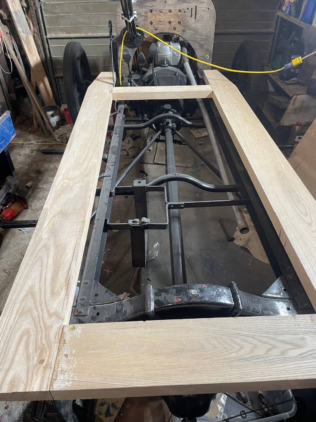Unfortunately It was what i was thinking....That I'm not that far along and It was my own rough cut lumber I milled from dead ash trees either I will start over or fudge one way or the other. didn't like the front cross member over the transmission band cover screws anyway