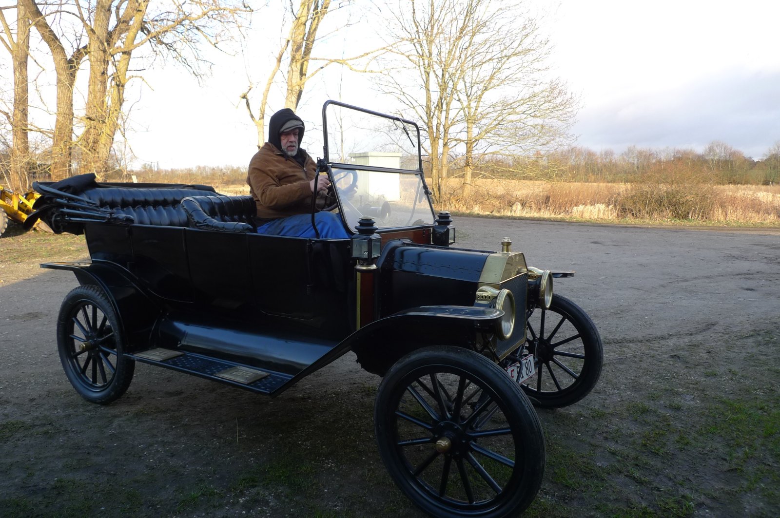 My latest acquire to the T-collection is this 1914 Touring. Bought at a respected T parts dealer in Mass. via a local broker which took care of the transport from US to Denamrk. It arrived in a container with 2 other cars and here I'm picking it up and drove it back from the broker to home approx 20 miles drive.