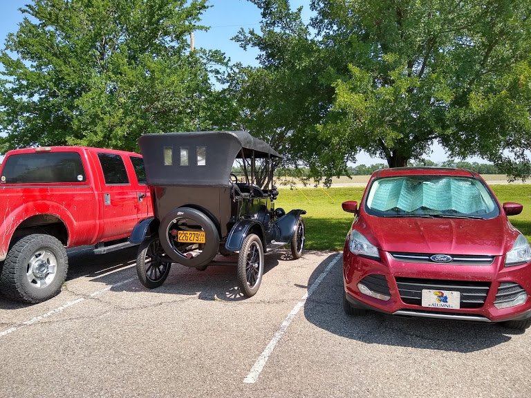 I took my car to 2 car shows. The first was the Midwest Region Breakfast run, the second a celebration of Elgin Industries 100 year anniversary. Elgin Industries was a supplier of piston pins to Ford in 1919. The employees were happy to see a nice selection of Vs including a 1919. Since both shows were in relatively heavy traffic areas, I practiced my trailering skills on both days.