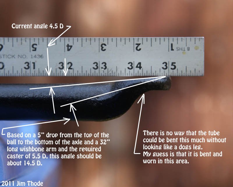 This car had incorrect spindles from earlier car, then you replaced with the proper 1926-27 ones which lowered the axle, correct? Was the wishbone also replaced or the mounting ears bent to compensate?