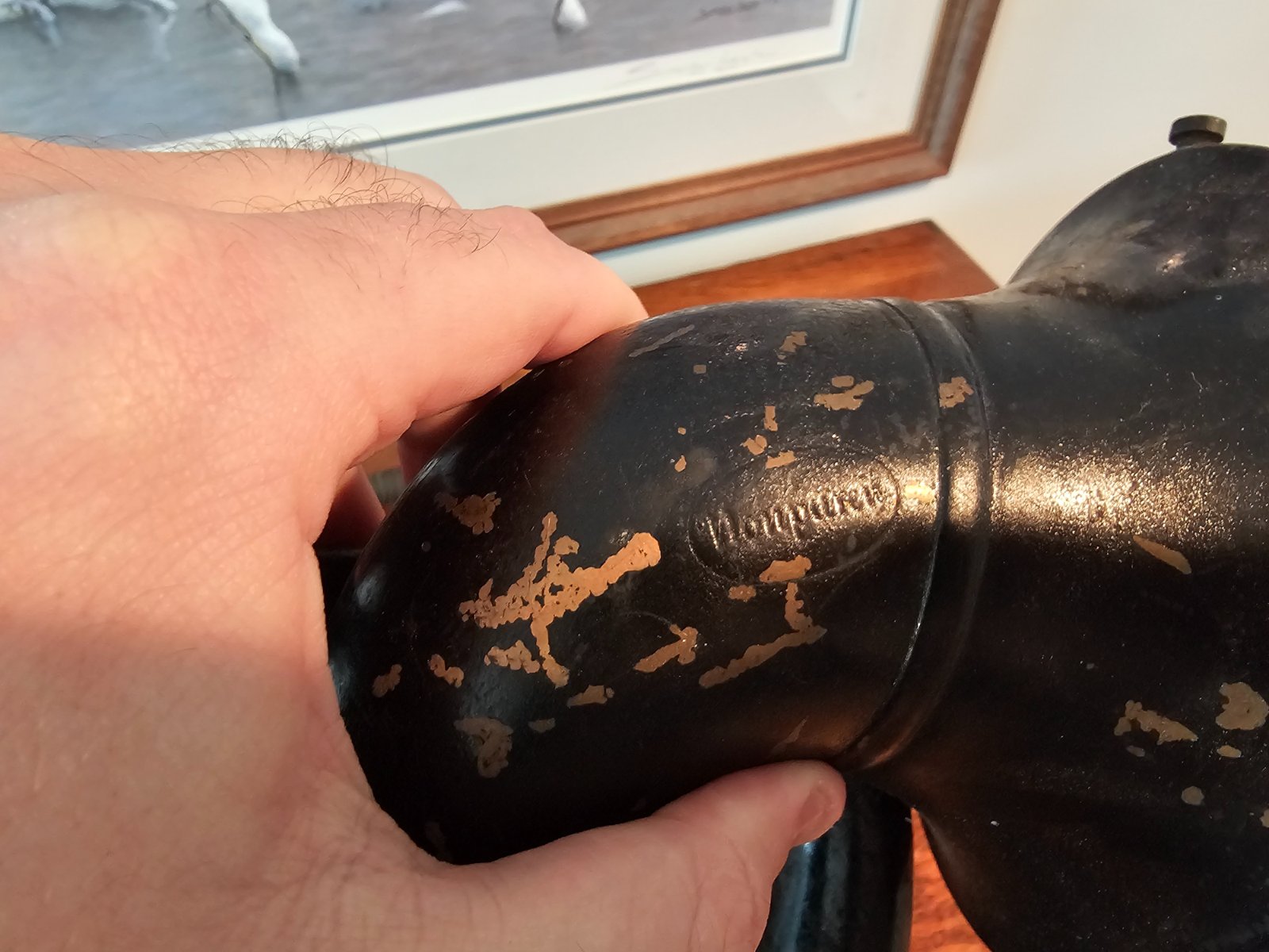Very nice original brass horn, the paint is flaking, but I don't see any dents in it aside from some very minor ones around the rim of the screen and overall looks to be in excellent condition. Seems to work fine if you blow through it. Asking $300 plus shipping, make an offer.