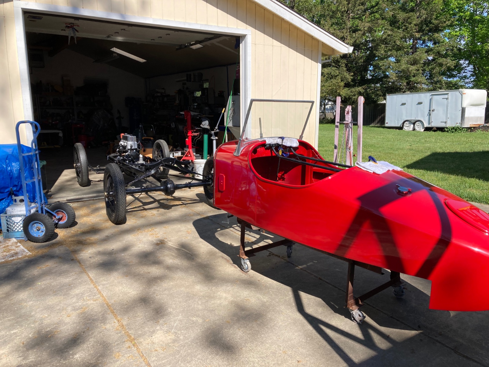 Steven, the body is currently covered for safe keeping while I finish the chassis. Here’s a photo of the body mocked up on the bare chassis.