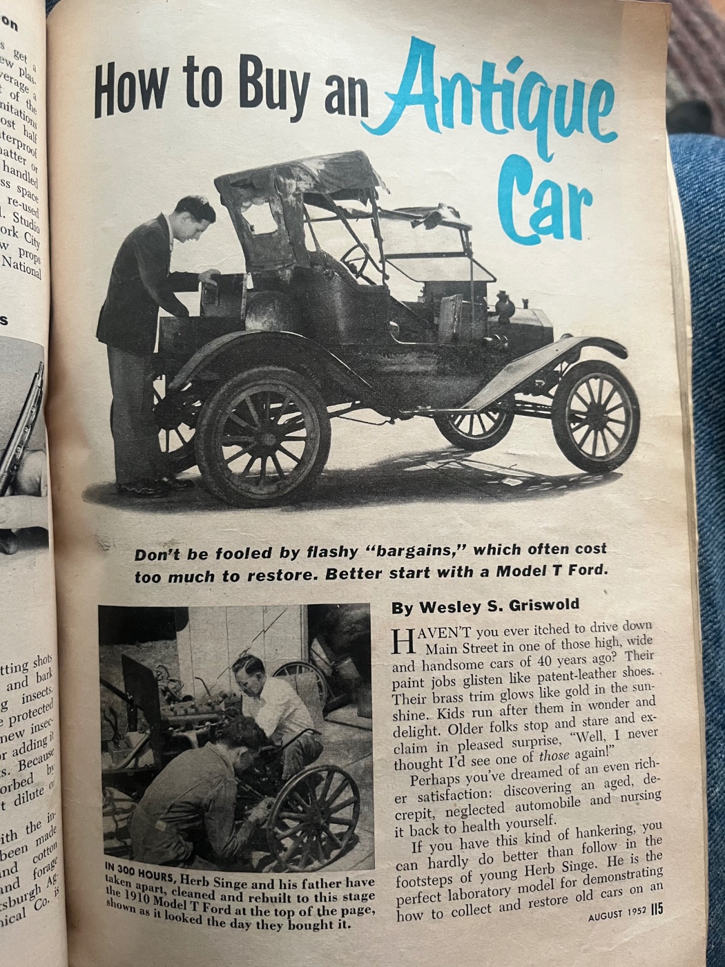 Prices have changed for sure. Makes you wonder what he paid for the 1910 or11 T he bought in 52. In those days people probably didn’t think much about a T but very little.
