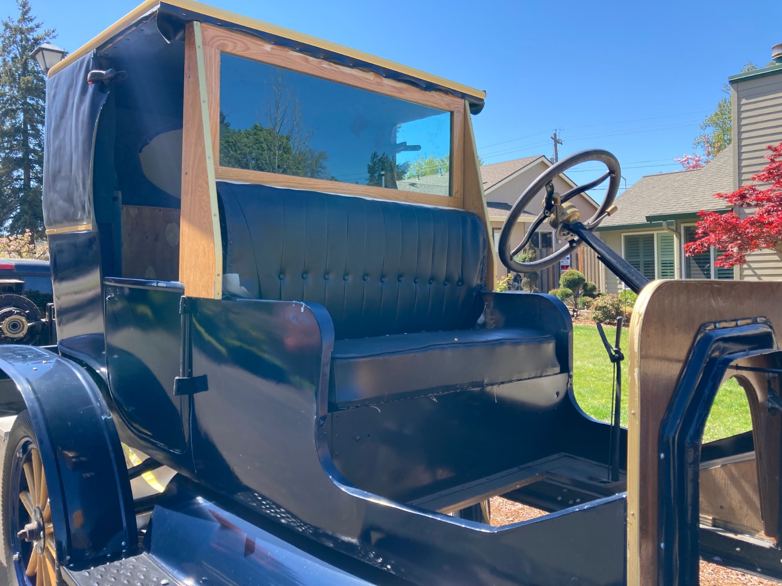 This is a collection of parts being sold as one lot. The body on this car is a tribute/replica/recreation of a landaulet. I’m not sure exactly what to call it, but it was handbuilt out of aluminum by Don Johnson of Los Molinos, California. Don built airplanes, race cars, street rods, boats and other items out of aluminum. Don had a car featured in the Vintage Ford (volume 33, number 2, Mar-Apr 1998) titled “The French Connection” a hand built speedster in the French style. This car for sale has a new brass radiator with the tubes for the gas headlights. The hood is aluminum, I’m not sure if Don hand built it or if it was purchased, but it does not have any handles or louvers. The front fenders are steel as are the splash aprons I believe. The rear fenders were hand built out of aluminum by Don. A lot of work has gone into this build. Other custom parts on this car include the hand built gas tank. The front seats have new upholstery and the rear seat base also. There is new upholstery in a box for the backseat back cushion, the interior needs some finish work. It has demountable rims with new tires. I believe the wood wheels are all rebuilt. There’s enough spare spokes to build two more wheels. The chassis was built using later parts. By that I mean, the frame is not early. The springs are not tapered Springs, no early wishbone. The rear end has hydraulic brakes adapted. This also comes with a rebuilt engine with .030 over Aluminum pistons and a Chevy overhead valve conversion. There are a lot of other parts the go with this car. I’m sure there is a lot about this car that I haven’t described, hopefully the pictures will answer many of them. Feel free to call with any questions.