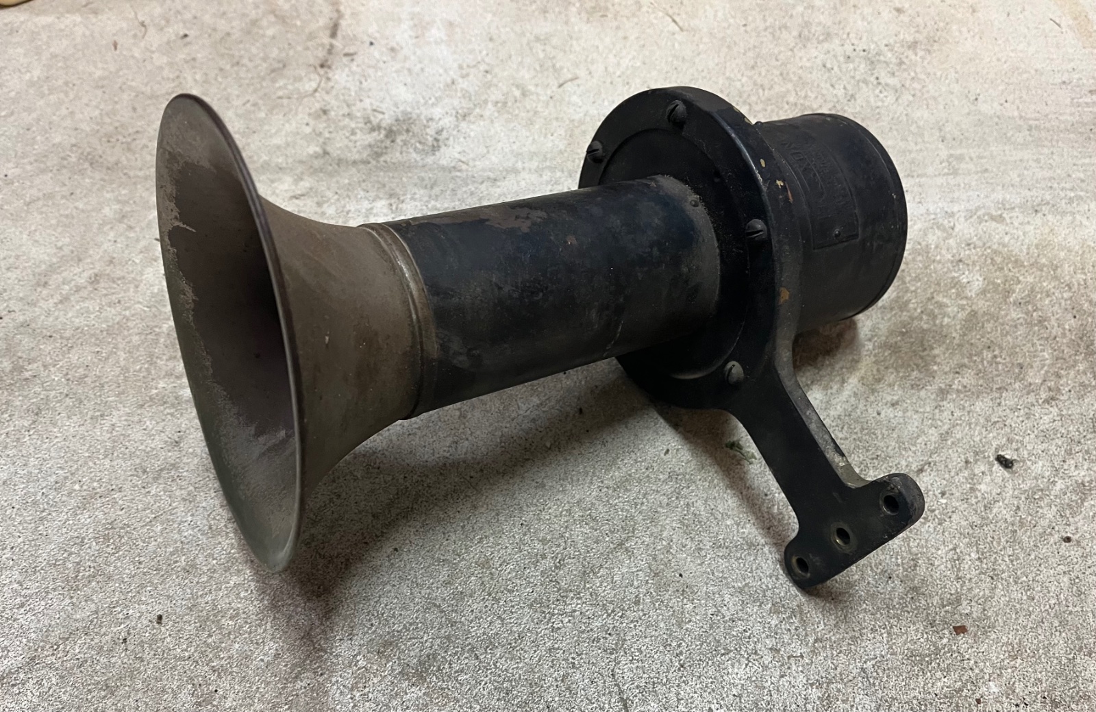 This is a neat Electric Klaxonet horn. Just like a hand operated but electric driven. I hit it real quick with 12 volts and it works. Very loud! The bell looks like it was nickel plated but some has worn off. Appears to be brass underneath.