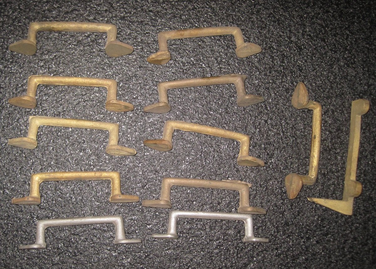 For Sale: A bunch of rough unmachined yellow brass castings for early Model T's: Fuel-air mix escutcheons, $3 each; Radiator mounts, $4 each; "1911" style top brackets, $5 each; "1909" style top brackets $5 each, Hood handles, $8 / pair; coil box mounting bracket (one only) $5, part of a tail light bracket, $2. Shipping not included. Thanks for looking!