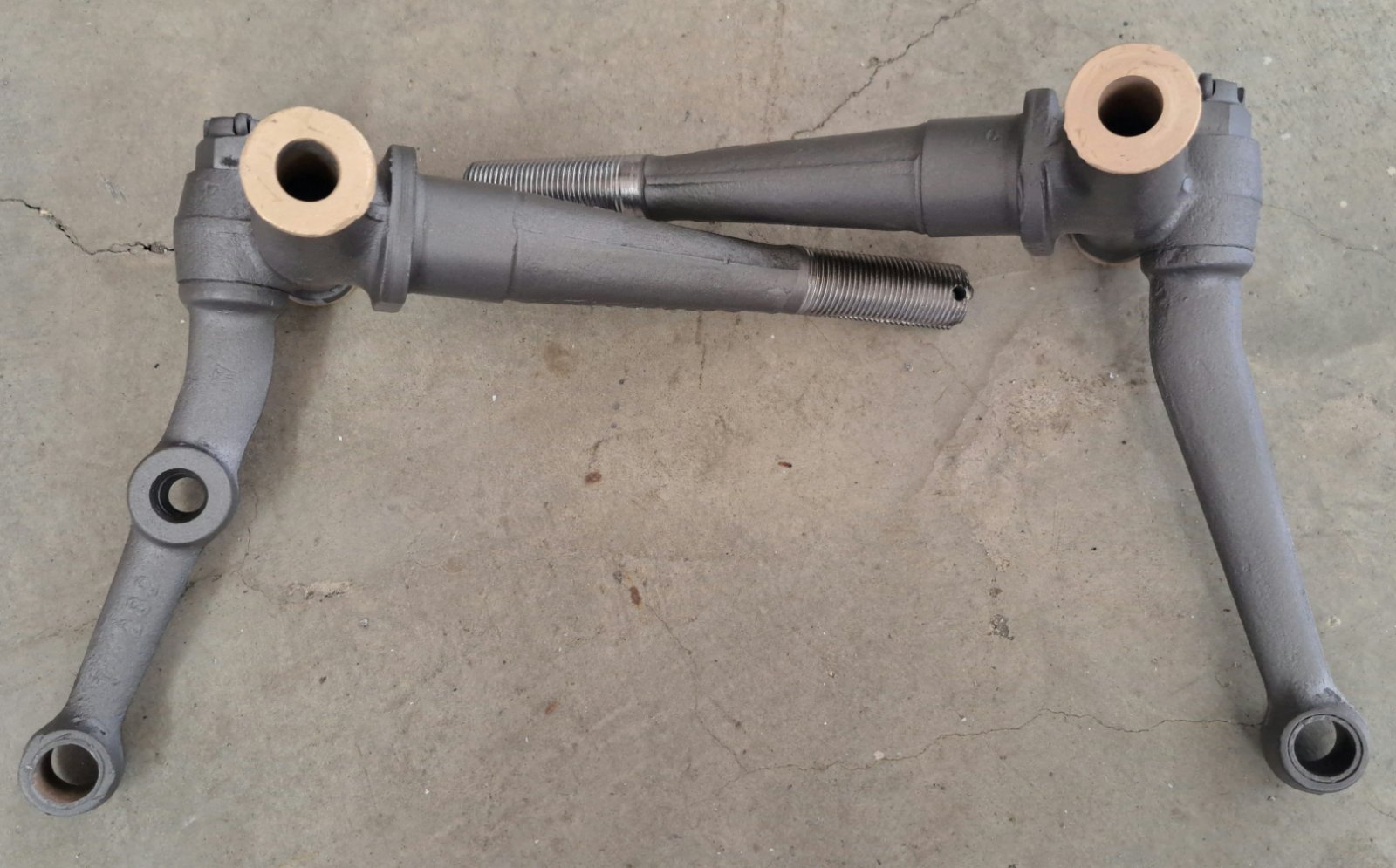 Early style spindle set with straight arm and straight speedometer arm. Excellent threads. Will need bushings replaced. Price is $75.00 plus $16.50 domestic shipping. Mark Chaffin (951) 805-0928