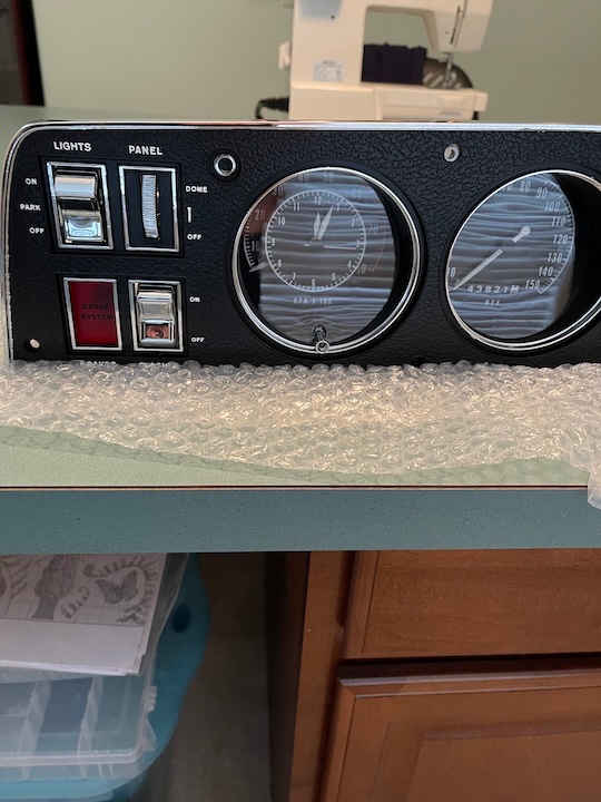 Here is the dash being done. Yes we used my wife's sewing room. Ha!!