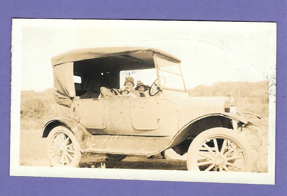 This last photo is a bit of a mystery to me. Is that a pet badger, teddy bear or dead gopher he is holding? It's staged to look like one of the youngsters is driving. I see a pair of feet under the far running board.