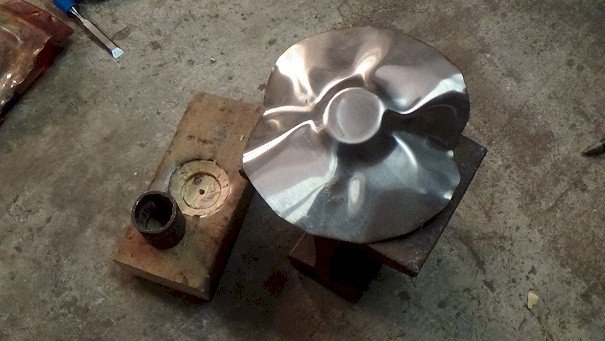 Starting the stainless steel muffler end pieces, looks ugly. It finished OK.