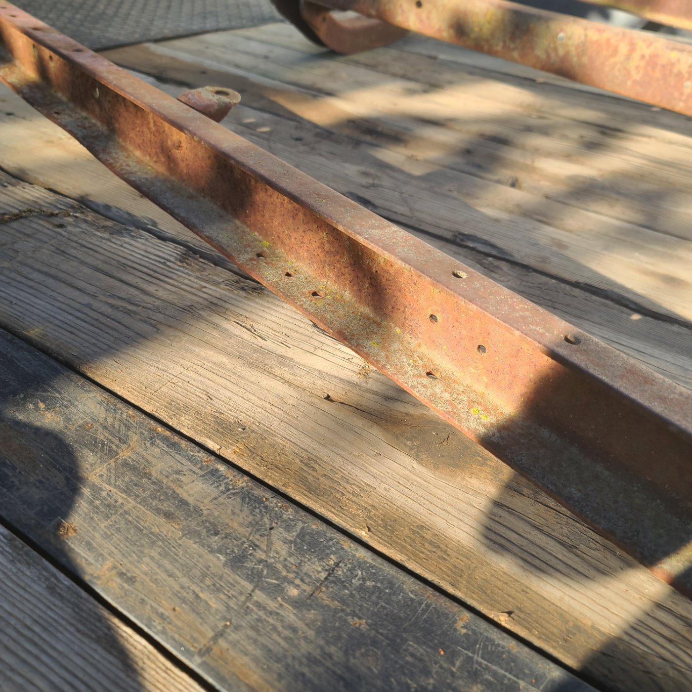 Allan, I thought I could see the third hole on the side of the frame rail, although the angle didn't clearly show it, I gave it that benefit of the doubt. HOWEVER! I was bothered a bit by some too many holes in the frame. Again, not uncommon for frames or chassis that have been repurposed as power saws or field wagons. Once the flipped over underside of the rear cross member was posted, I said to myself "Uh, no, I gotta go out and look closely at mine, but that doesn't look like I remember it".