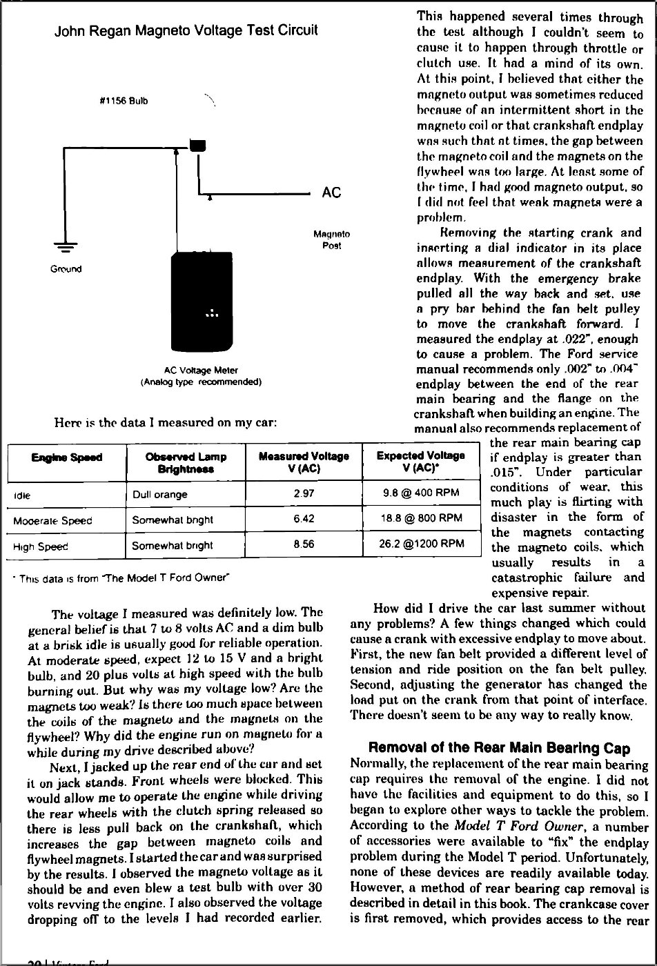 I cannot locate a copy of the article, but ;Check Vintage Ford Volume #42 Number 2 March/April 2007 for a comprehensive technical article on diagnosis of this problem and a detailed solution written by Ken Foster.