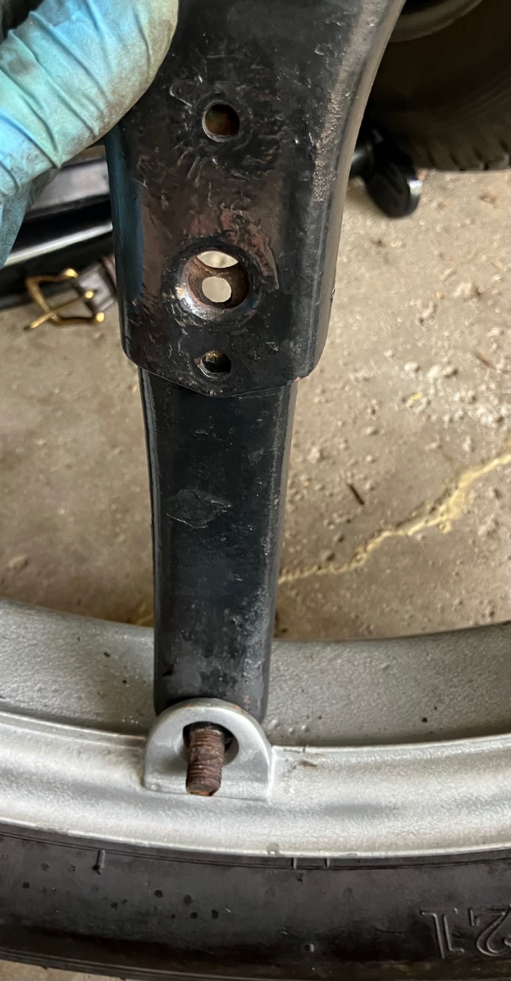 Hi all, I have a 23 touring with the 21 inch balloon tires. I have had this spare tire carrier on for years, but the tire always “sat” on the top two hangers and never could bolt to the bottom. You can see from the pics that the stock holes, as lined up, don’t allow it to fit. If I move it down away from the centered holes it could fit fine. Any ideas if the bottom hanger here looks correct? Think I need to replace it if it’s bent? I don’t have a way to fabricate something and it may be cheaper to buy new than take to a shop. Thanks