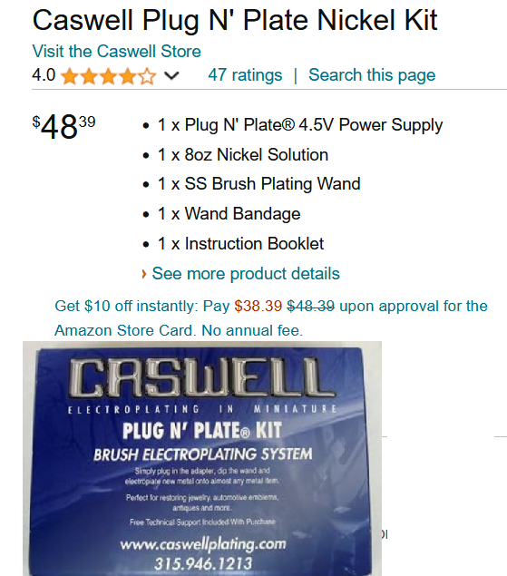 The most recommended plating supplier is Caswell the have a variety of methods all depends on what your intending to do & size, so start looking at this one and others https://caswellplating.com/plug-n-plate-nickel-kit.html same price as on Amazon