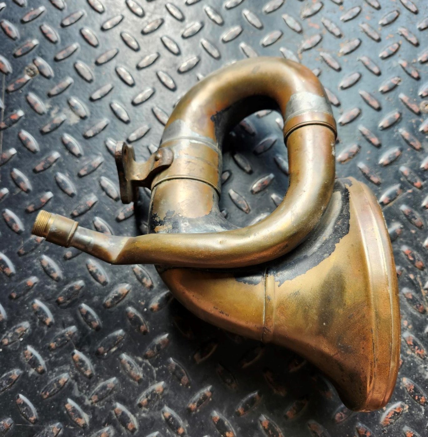SoId to Paul! Here is an original 1913 to early 1915 Rubes horn. It has its share of bumps and bruises. It would be good for an unrestored car or ? Take a look at the photos, you get what it is.