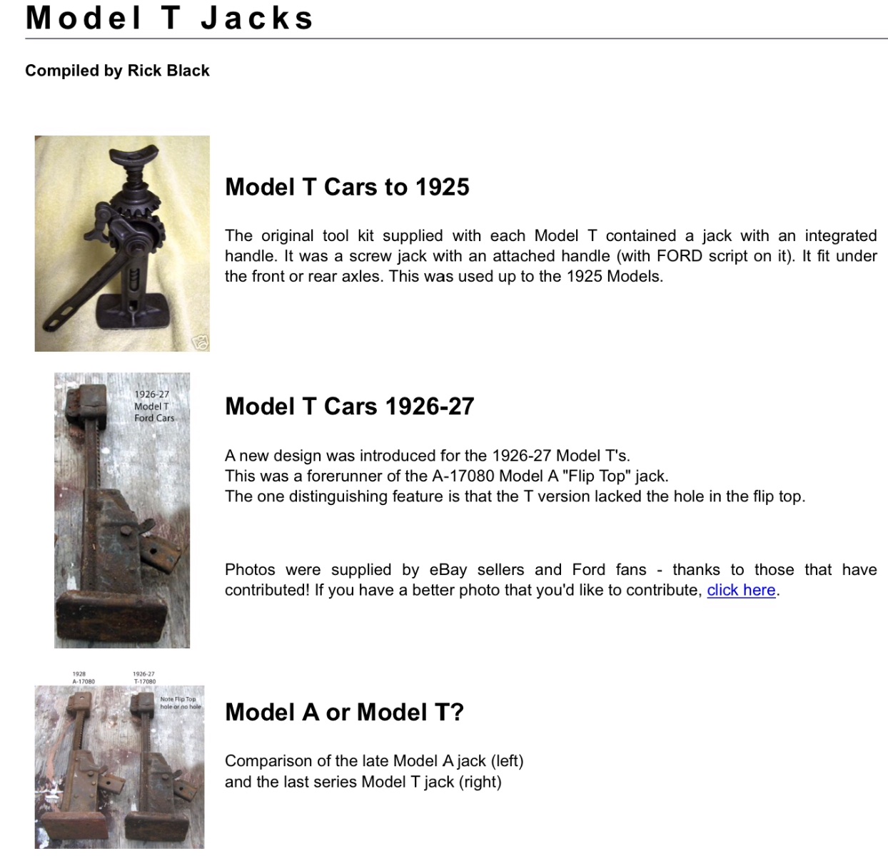 Here is Trent's summary, if you read the last paragraphs on the Flip Top. He doesn't mention that little center hole in the Flip, but does note that ratchet jack continued to the Model A, those A guys research the heck out of A parts, and agree the Flip top , with the hole, is Model A.