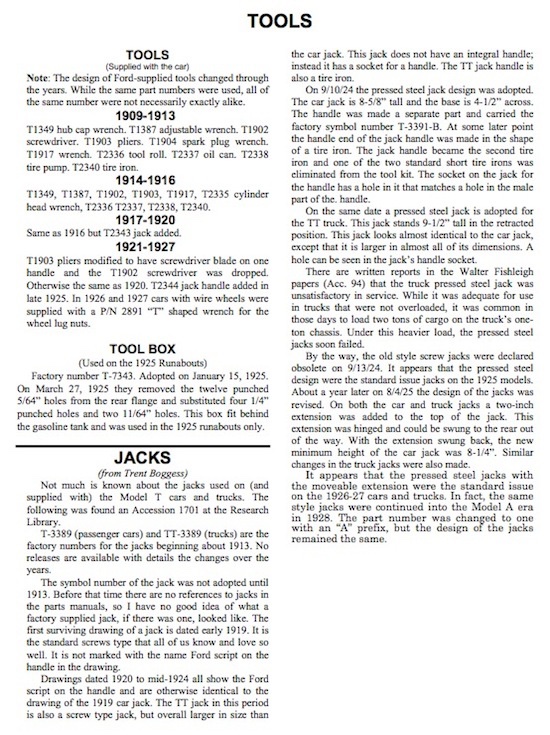 Here is documentation that Ford was suppling jacks in 1913, note it states "and handle" for the jack. ALSO, it shows Spark plug wrench and handle, that refers to the T2178 style plug wrench that was supplied into 1913 (see photo).