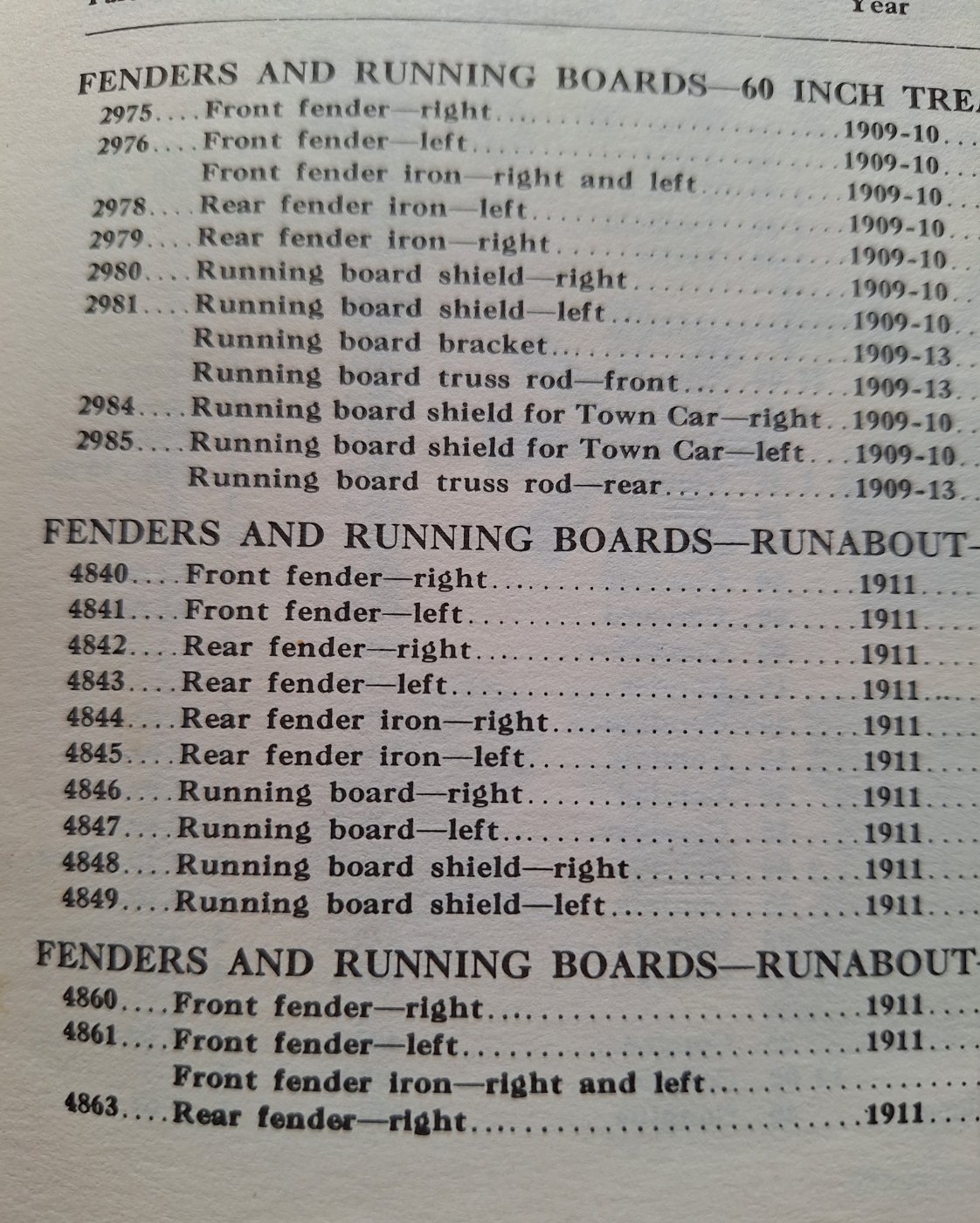 The 1913 running boards had the Ford script stamped across the boards, so then there was no left or right. Previously, to keep the Ford script facing the onlooker, the different spacings for the front and rear running board mountings meant there was a left and right, according to the running board bracket holes.