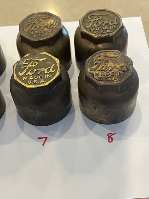 Brass hubcaps, 1914-16. Take your pick, no cracks, all are in good to better condition. $20 each plus shipping. Kdmks AT att.net.