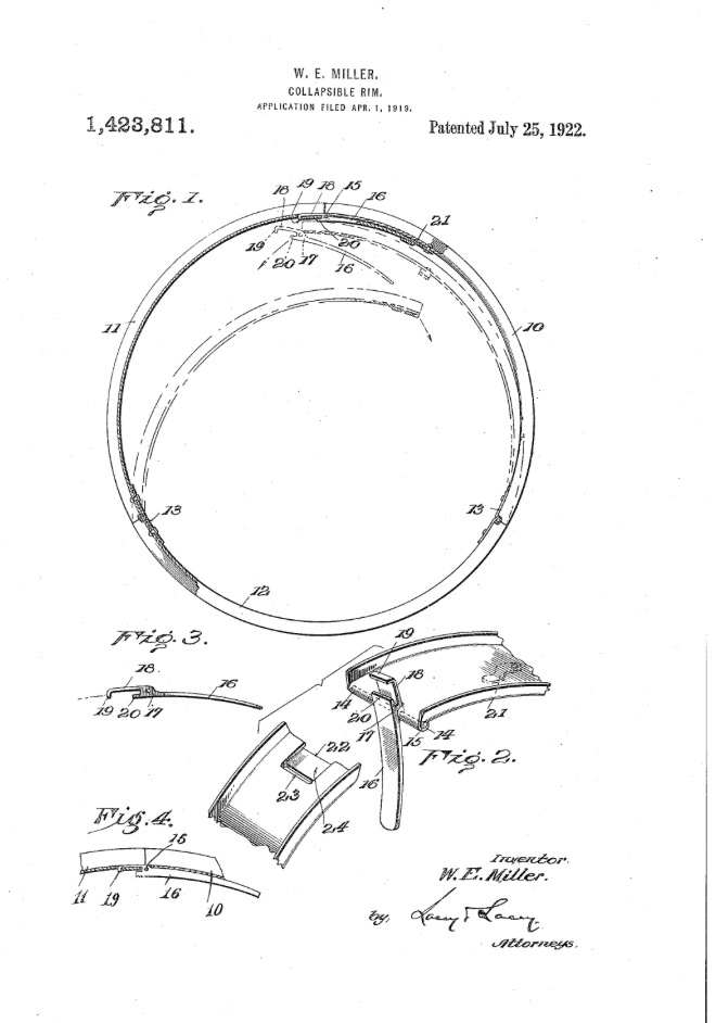 So used Google patent search and typed in 'demountable rim' and got lost in over 3000 hits over many years. Gave up