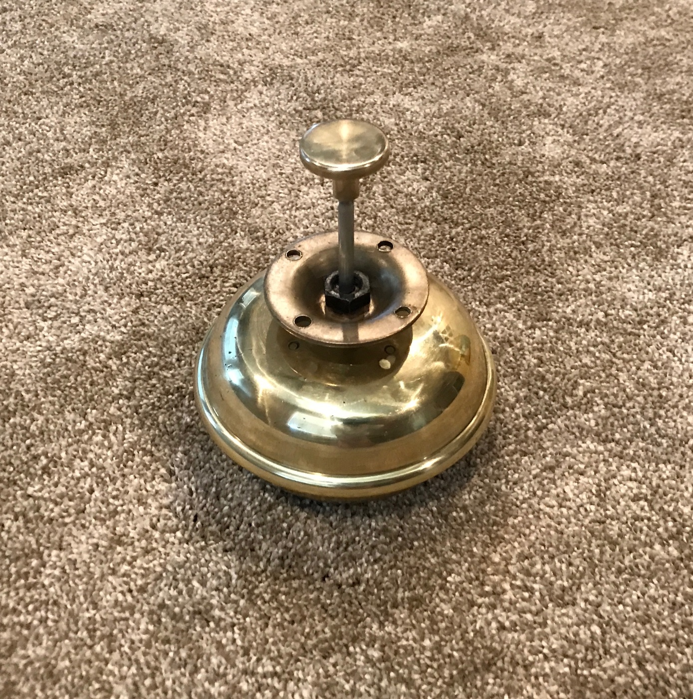 Here is an original T era Bevin polished brass Bermuda bell. Heavy thick brass. It has a nice polish, no dents or cracks, just a few small nicks here and there from actual road use under a T. It works great, very, very loud DING DONG! when plunger is depressed. Holds the fading tone after ringing, something only original bells can do. Very clean. Ready to mount under your floor board with 4 screws and nuts. 5.5 diameter bell. I have one on both my Ts. Great fun. A must have noise maker! 200 includes shipping.