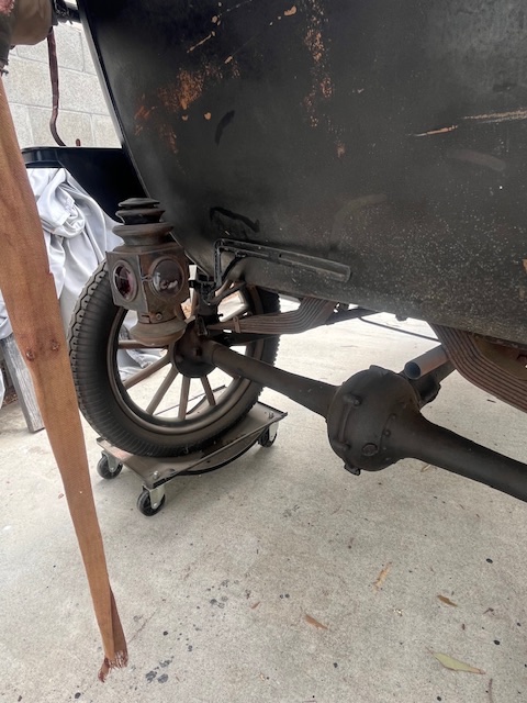 Original unrestored car, original top and upholstery, and paint. The fenders have been repainted. Safety glass in windshield and four new tires and tubes. Car runs, but haven't driven in for several years. There is no wear anywhere. It has a Stewart 100 speedometer, but is not connected. The starting crank and handle have no wear, and is a late 1913 build date. Engine number 378658, cast 10-13-13. Has 1913 hubcaps all around. The wheels have been scraped to the wood. $17,000.