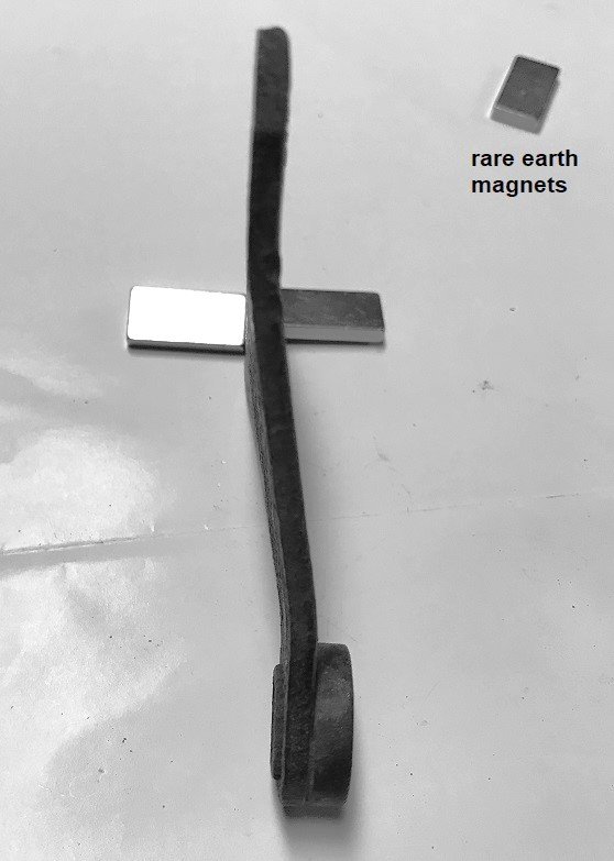 The aluminum frame is spaced away from the A-pillar to account for the rubber and yet the bracket, yet to be made, only needs to have 1/32" more center lobe by the sketch, even though the steel frame is clearly 1/4" deeper. I conclude that the rusty frame is incorrect.