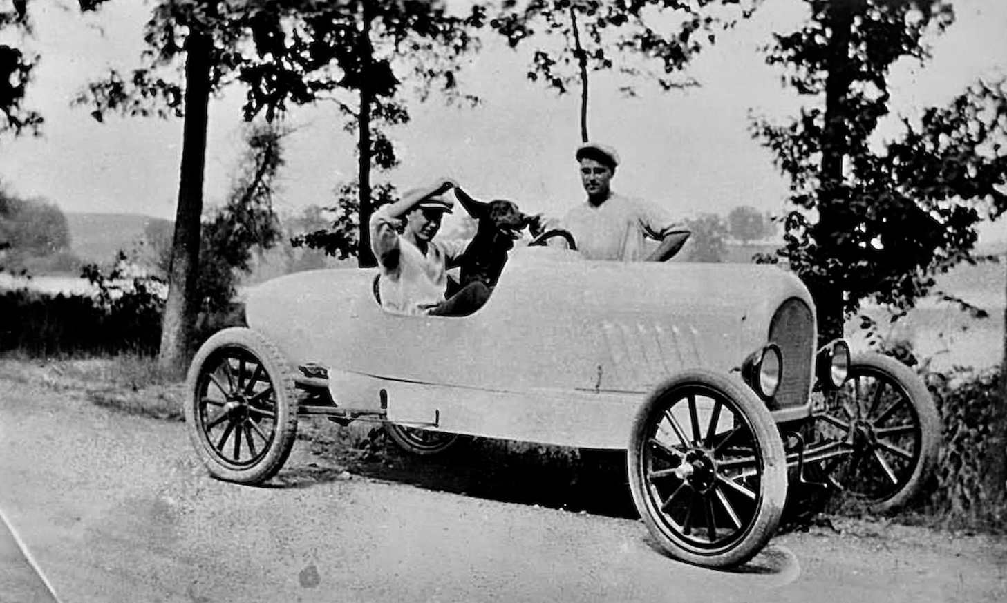 Adding to the confusion, the car behind the speedster (from what little can be seen of it?) appears to be a late 1920s Packard sedan, in pretty nice condition? Maybe? Somebody driving his cherished old Packard down the road saw an interesting old speedster and stopped to look it over?