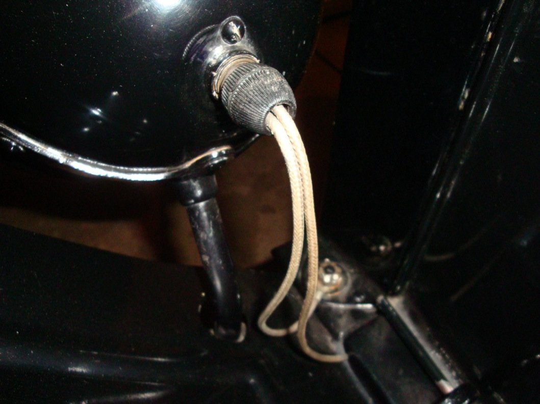 My 1915 Touring headlight ground wire. Note: cross tube and wire not shown. Needs to be repaired. I don’t know this to be original. For your reference.